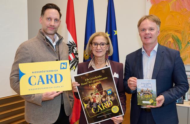 Landeshauptfrau Johanna Mikl-Leitner ist überzeugt: „Wer auf der Suche nach einem Weihnachtsgeschenk ist, das besondere und unvergessliche Momente zaubert, für die oder den ist die Niederösterreich-CARD genau das Richtige! Bei den über 300 Ausflugszielen, die bei freiem Eintritt entdeckt werden können, zeigt sich Niederösterreich von seiner spannendsten und abwechslungsreichsten Seite. Mit der CARD schenken Sie zu Weihnachten das, was sich wirklich jeder wünscht: Zeit voller gemeinsamer und unvergesslicher Erlebnisse und wertvolle Erinnerungen für die beste Zukunft unserer Kinder!“